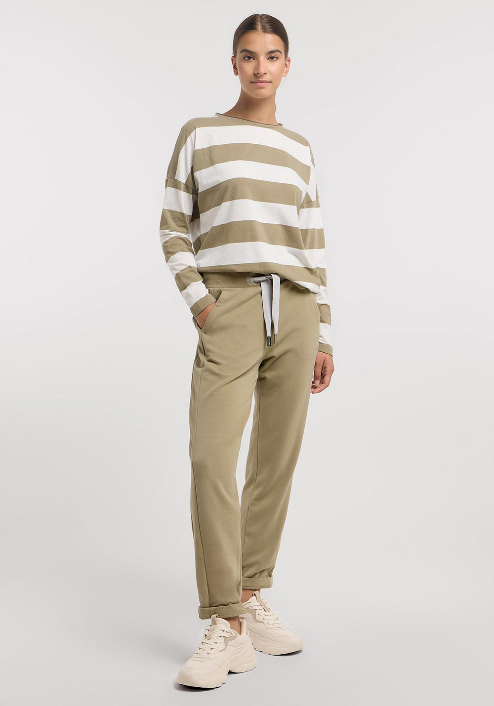 weiche, elastische Sweatqualität, kuschelig angeraut