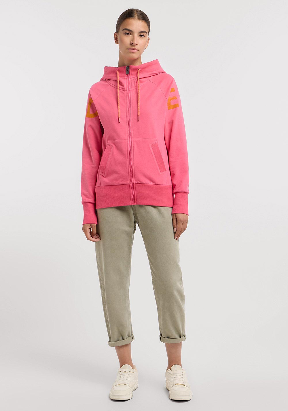 slim fit, schmal geschnittene Sweatjacke mit Kapuze mit Raglanärmeln, 65cm Rückenlänge